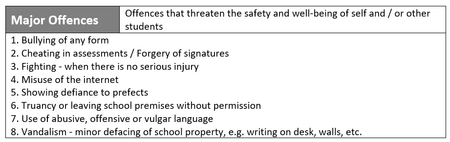Absence from school without a valid reason is a school offence. Non-valid reasons include oversleeping and willful absence from school. Travelling during term time is generally not considered a valid reason for absence. Parents who wish to take their child overseas for vacation and / or to attend to personal matters should do so during the school holidays. Should there be any urgent need to travel, parents are requested to apply via the following link: https://go.gov.sg/studentleaveapplication